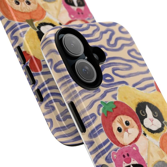 Costume Cats Phone Case – Adorable Vintage Kittens in Fruit & Animal Hats, Playful Protective Cover for Iphone 16 Pro Max 15 14 13 12 11 X, Samsung Galaxy S25 S24 S23 S22 S21